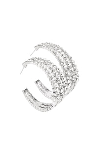 A faceted blue bead is pressed into the center of a studded silver frame radiating with antiqued filigree. Matching blue beads swing from the bottom of the frame, creating a whimsical fringe. Earring attaches to a standard fishhook fitting.