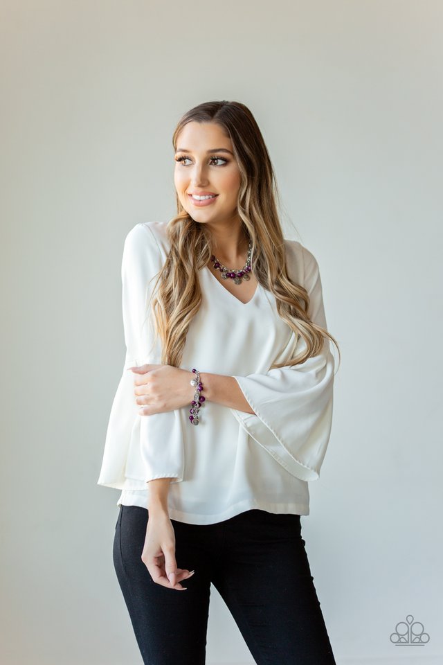 Infused with bubbly plum beads, an array of silver flower charms swing from a bold silver chain below the collar for a flirtatious floral look. Features an adjustable clasp closure.