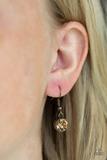 Encased in studded brass frames, golden topaz rhinestones link below the collar for a glamorous look. Features an adjustable clasp closure.